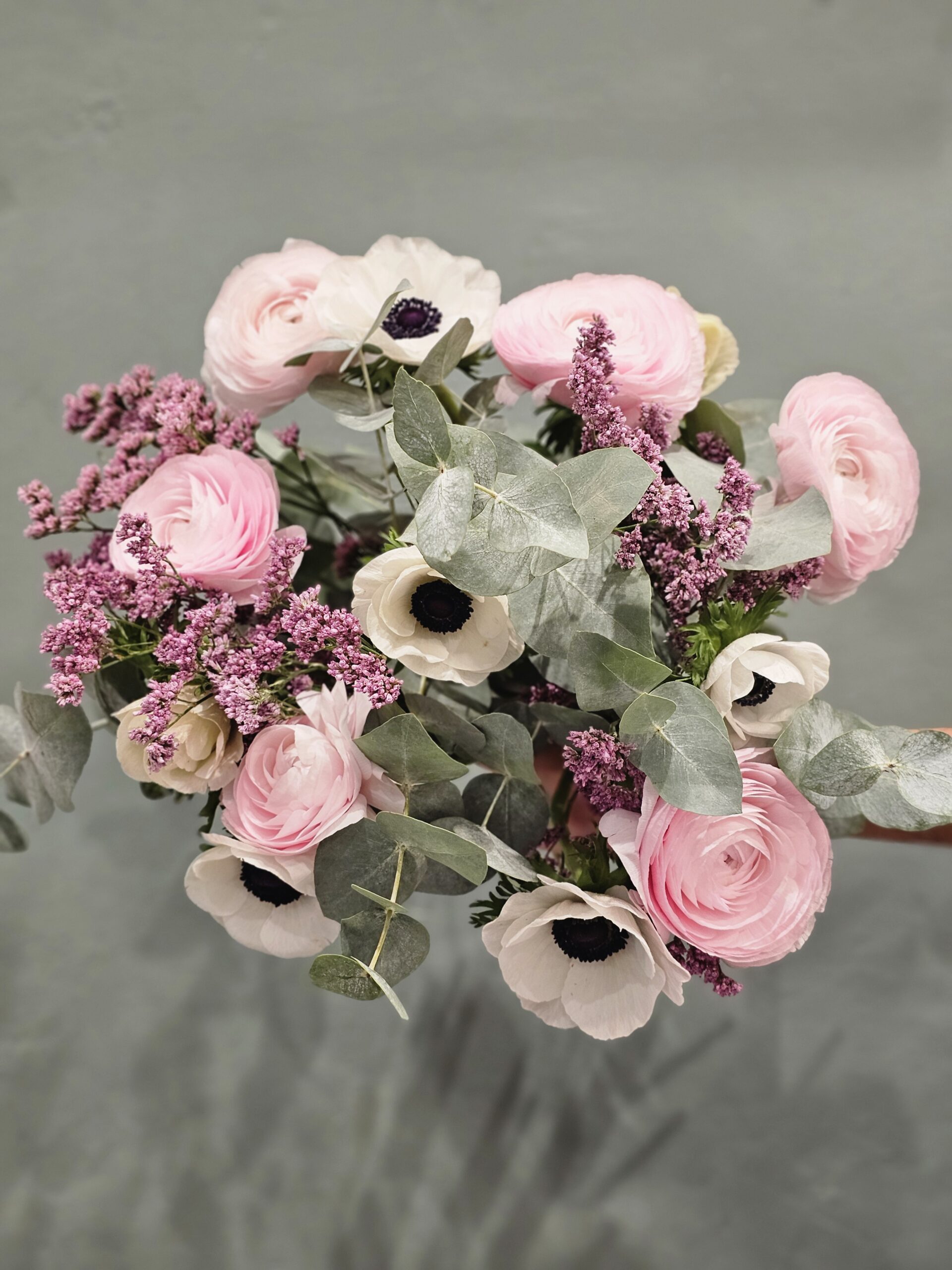 Retrouvez dans ce beau bouquet de saison à base de renoncule, d’anémone, du limonium et de l’eucalyptus. Ce Bouquet Love Love est réalisé principalement avec de la fleur de saison et française. Si vous avez envie d’une autre couleur, je vous invite soit à me contacter soit à me laisser un commentaire dans la partie note.